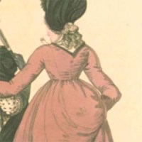 January 1798, fig. 166, morning dress. I’m interested in the back construction there – the shape of the pieces, and the roundness of the waist.