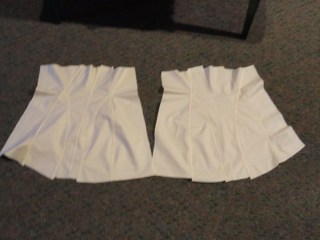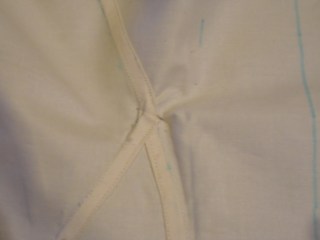 A very important thing I learned, then forgot, then remembered: with this sort of corset you have to sew the pieces in the right order. From left to right, above, you have to sew the second piece to the third and 4 to 5, so that the gores/gussets and the pieces they’re sewn to form a smooth line to be sewn to the first and sixth pieces. Unfortunately, when I remembered I had already trimmed the seam allowance on one side for felling and couldn’t fix that, but I did take out the seam on the other side.