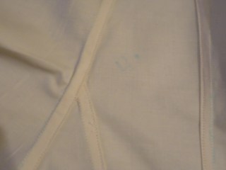 This is definitely a style that requires writing numbers on the pieces. To be on the safe side, I didn’t double the fabric, but instead traced around a pattern piece, wrote “[number]A” on them, put some dots in to mark the seam allowance roughly, and then flipped them over and traced them again (with “B”) so that they would all have the seamline drawn on. This was probably a very good decision.