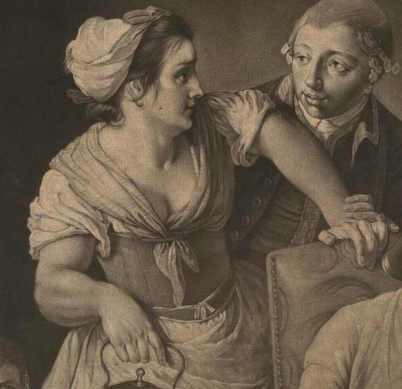 No pictures due them looking pretty much the same as before minus about 3/4″ off the top in the back. I still think they’re too small in the front, on both edges, but they’re not unwearable. I was actually feeling a bit down about them until I looked at Edward Penny’s The Profligate Punished by Neglect last night – the original from 1774 and the print from 1775.