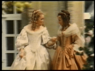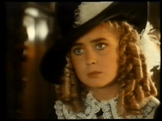 Years pass, the Restoration happens, and everyone is happy. Panthea’s aunt takes her to court to meet Charles II, but she also meets his mistress, Barbara Castlemaine (as they call Barbara Palmer here), and Panthea’s cousin Rudolph, who are a pair of schemers. Barbara is worried that Charles’s interest in sweet, innocent Panthea – as well as Panthea’s friendship with the oddly cheerful Catherine of Braganza – will lead to Panthea becoming the next royal mistress, so she does everything she can to get rid of the other woman. Eventually, this culminates in Panthea being tried for the tax collector’s murder when Charles is out hunting or something like that. Silver Blade is also arrested as her accomplice – Lucius has remained undercover to help seek out Charles’s enemies – and things look very bleak. Until they are, of course, rescued, but it is all most angsty and dramatic until then. The movie ends with a happy cousin-marriage.