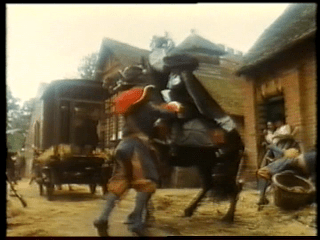 Plot: The film begins during the time of the Commonwealth, just before the Restoration. Lady Panthea Vyne is harassed by a Cromwellian tax collector into marrying him, but after the wedding they’re waylaid by the notorious highwayman Silver Blade (aka Lucius Vyne, Panthea’s cousin), who duels the tax collector and kills him, taking his ill-gotten gains to return to the poor. Panthea goes back to her house and pretends it never happened.