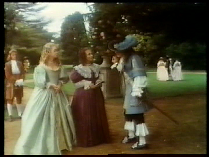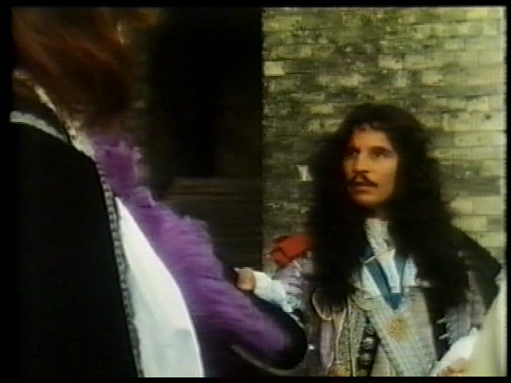 Years pass, the Restoration happens, and everyone is happy. Panthea’s aunt takes her to court to meet Charles II, but she also meets his mistress, Barbara Castlemaine (as they call Barbara Palmer here), and Panthea’s cousin Rudolph, who are a pair of schemers. Barbara is worried that Charles’s interest in sweet, innocent Panthea – as well as Panthea’s friendship with the oddly cheerful Catherine of Braganza – will lead to Panthea becoming the next royal mistress, so she does everything she can to get rid of the other woman. Eventually, this culminates in Panthea being tried for the tax collector’s murder when Charles is out hunting or something like that. Silver Blade is also arrested as her accomplice – Lucius has remained undercover to help seek out Charles’s enemies – and things look very bleak. Until they are, of course, rescued, but it is all most angsty and dramatic until then. The movie ends with a happy cousin-marriage.