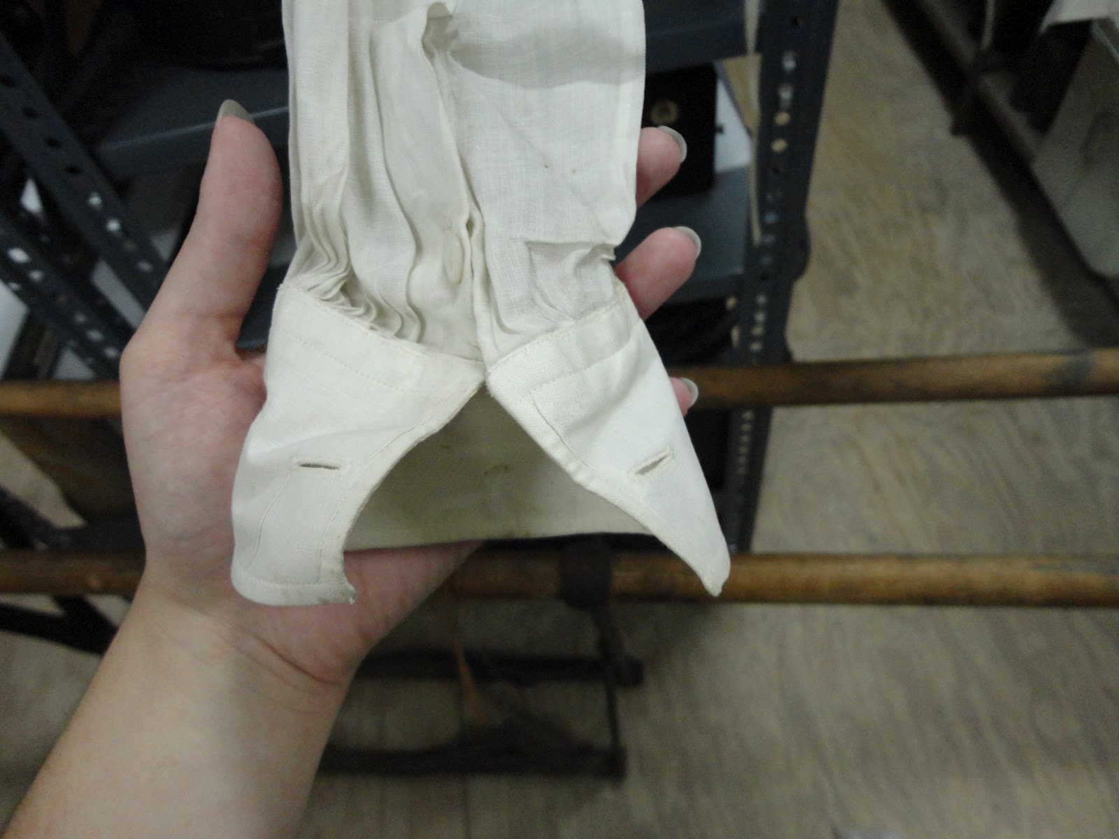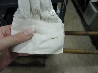 While at work around this time, I checked out a woman’s blouse from the same era that I knew was made to wear with detachable collars, and I took a few pictures for research purposes.