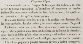 Without extending here on the origin and antiquity of toilettes, we must confine ourselves to remark that a toilette is now an indispensable piece of furniture for all people; whether they have pretensions or are out of style.