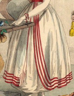 It proved impossible to scan the 1834 Godey’s Lady’s Book I bought on eBay – the text is small and the paper isn’t in good condition, so it comes out all blurry.  So I typed up the fashion text, and as there aren’t any fashion plates, I thought I’d over-analyze each little bit of description so you can picture it in your head.  There is a remote chance I might try drawing the end result, but … we’ll see about that later.  (And I’ve found more on Google Books, so if you like this I could keep going!)  It’s like a reverse version of the portrait analyses.