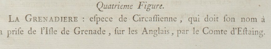 THE GRENADIERE: type of Circassienne, which owes its name to the taking of the Isle of Grenada from the English by the Comte d’Estaing.