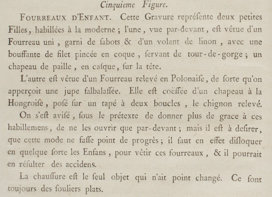 Some advise, under the pretext of giving more grace to dress, only opening them in front; but it is desired that this fashion does not progress; it must in fact disrupt Children somehow, dressing in these fourreaux, and it could result in accidents.