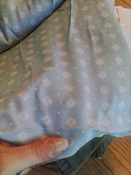 And here’s the soft rayon with an identical print (which I didn’t actually realize was exactly the same – also, I thought it was paler) that was intended for an envelope chemise: