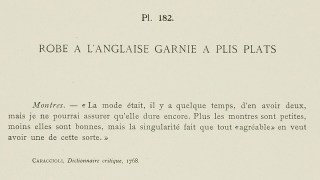 Robe à l’Anglaise trimmed with knife pleats edged with a Muslin frill, with cords and buttons matching the Gown, Hat trimmed with a gauze toque negligently fitted with a ribbon. (1784)