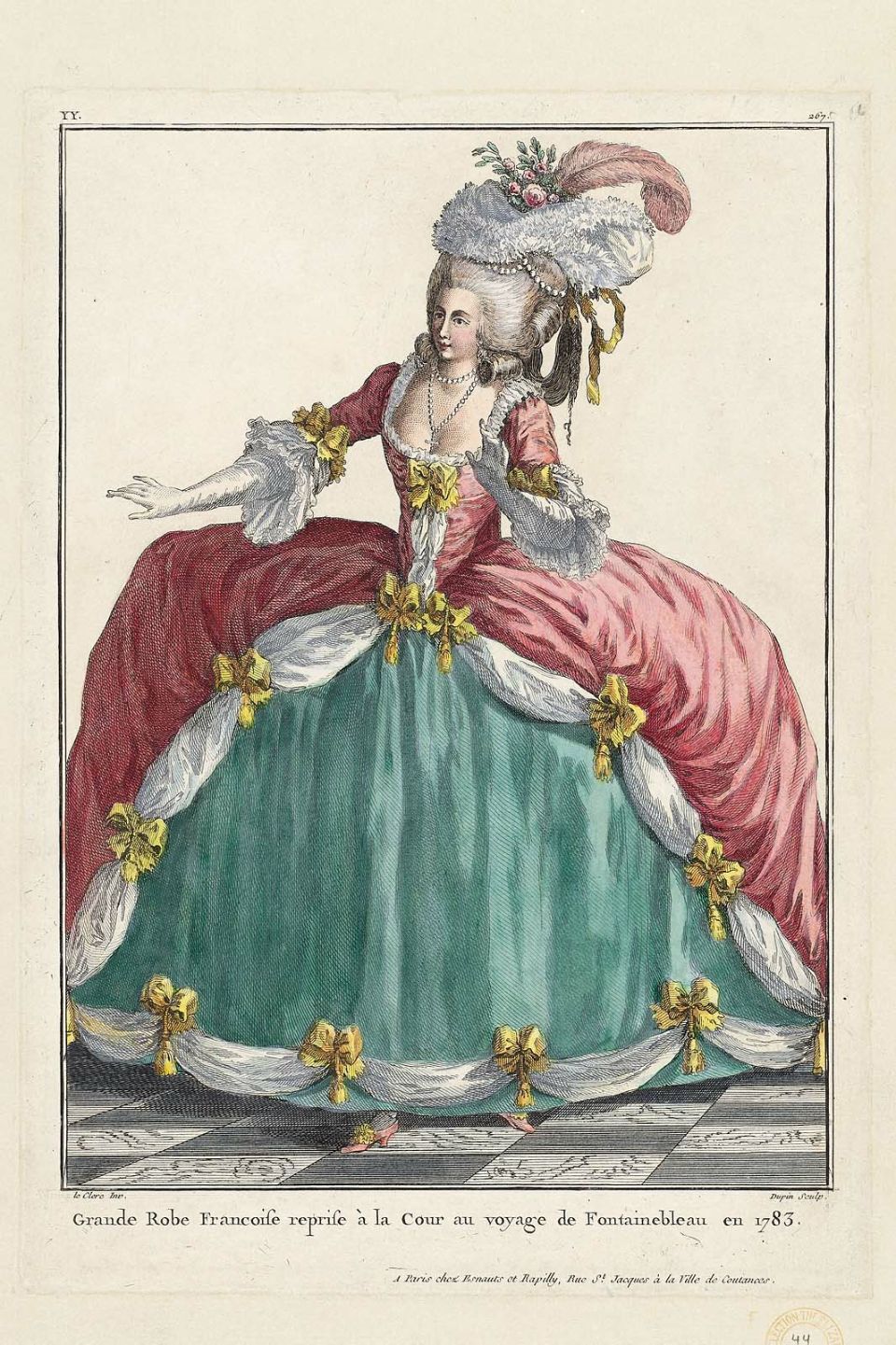 Galerie des Modes, 42e Cahier, 3e Figure June 12, 2013February 28, 2024 ~ Cassidy Percoco Full Robe Française revived by the Court for the journey to Fontainebleau in 1783. (1784) This plate was taken from the MFA Boston, 44.1581. Share this: Click to share on Facebook (Opens in new window) Facebook Click to email a link to a friend (Opens in new window) Email Click to share on Tumblr (Opens in new window) Tumblr Click to share on X (Opens in new window) X Click to share on Bluesky (Opens in new window) Bluesky Like Loading... Related Published by Cassidy Percoco View all posts by Cassidy Percoco