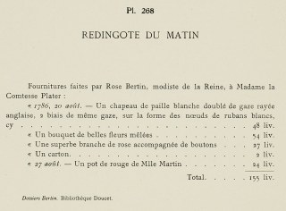 Accessories made by Rose Bertin, modiste to the Queen, for Mme the Countess Plater: