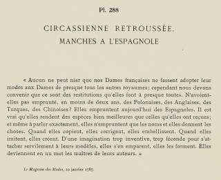 “No-one can deny that our French Ladies adopt their fashions from Ladies of almost every other kingdom; however, we must admit that there are restitutions that they make to almost all. Didn’t they borrow, in the last two years, from Polish women, Englishwomen, the Turks, the Chinese? They borrow today from the Spanish. It is true that what they give back is better than what they take; and even to be exact, they only borrow the names and they give things. When they copy, they revise, they embellish. When they imitate, they create. With a very inventive, very fecund imagination for slavishly focusing on their designs, they seize it, they form it. They become, in a word, the masters of their authors.”