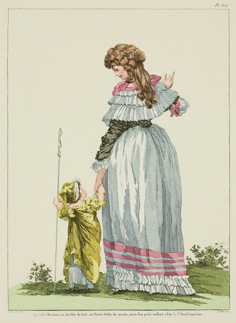 The pretty Mama in the Jardin du Roi, in an Informal morning Gown, with her little child dressed à l’Americaine.