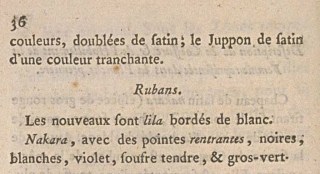 The ribbons which form the Flounce at the bottom of the Petticoat are nakara, as are the cuffs on the Corset.