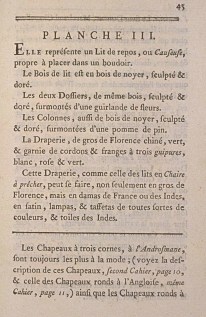 This Drapery, like that of the Preacher’s Pulpit beds, can be made, not only of gros de Florence, but in French or Indian damask, in satin, lampas, and taffeta of all sorts of colors, and Indian linens.