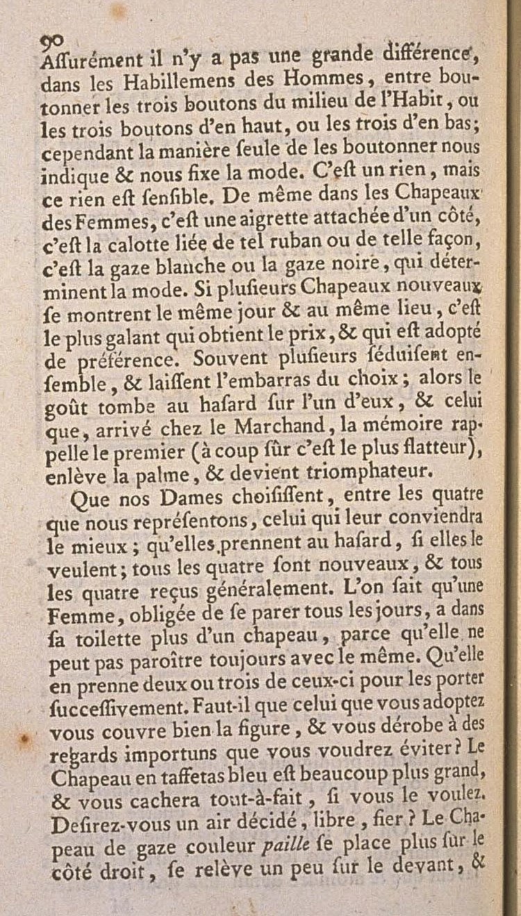 galant which gets the prize, and which is adopted by preference. Often several seduce together, and leave an embarrassment of choice; thus taste falls at chance to one of them, and the one that, turning up at the Merchant’s, memory recalls first (without fail it is the most flattering), carries away the palm, and becomes the winner.