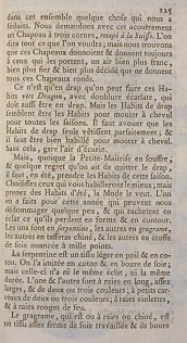 A manner of dressing to ride a horse, which is surely not less elegant than than that of our drawn Man, is that which consists of wearing well very white Breeches and a Gilet, with Boots matching those that we have described, and a Dragoon green Coat, all plain, with a scarlet lining. There is in this ensemble something that allures us. We require with this outfit a tricorn Hat, furbished à la Suisse. You can say all you like; but we find that these Hats always gave and give to those who wear them, a much more frank, much more proud, and much more decided air than all thee round Hats do.