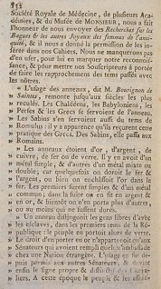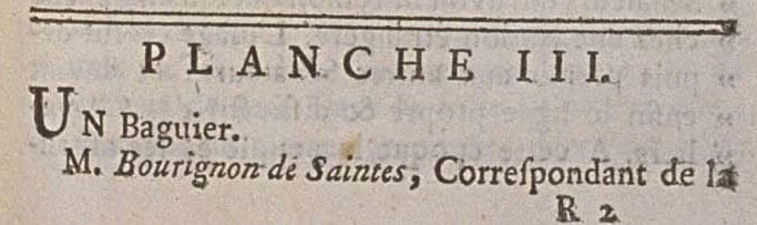 M. Bourignon de Saintes, Correspondent of the Royal Society of Medicine, for several Academies, and of MONSIEUR’s Museum, has made us the honor of sending us Research on Rings and other Jewels of women of antiquity, and gave us permission to put it into our Books. We will not fail to use it, to express our gratitude to him, and to get our Subscribers to see the similarities between past eras and our own.