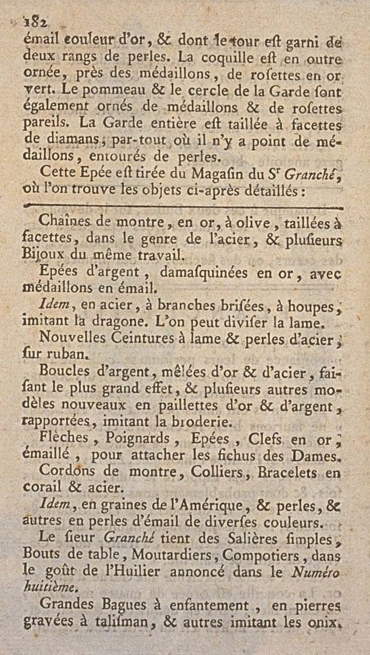 This Epée is drawn from the shop of Signore Granché, where the following objects are found: