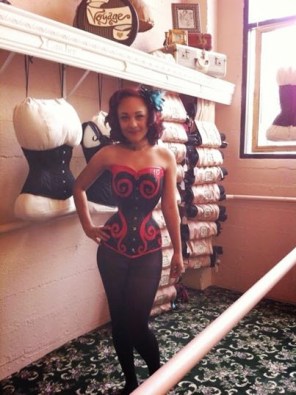 | Scarlet Empress in one of Cathy Jung’s corsets with a 16″ waist, July 1 2014 |