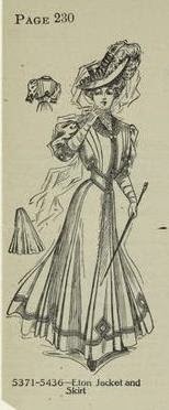 | “Eton Jacket and Skirt”, The Ladies Review, November 1906; NYPL 816649 |