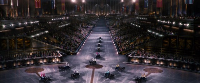 Now what about the Capital? In most scenes, fashion in the Capital is completely wild, based on Alexander McQueen and avant-garde modern couture – but the 1930s still comes through here and there, especially in the first film.