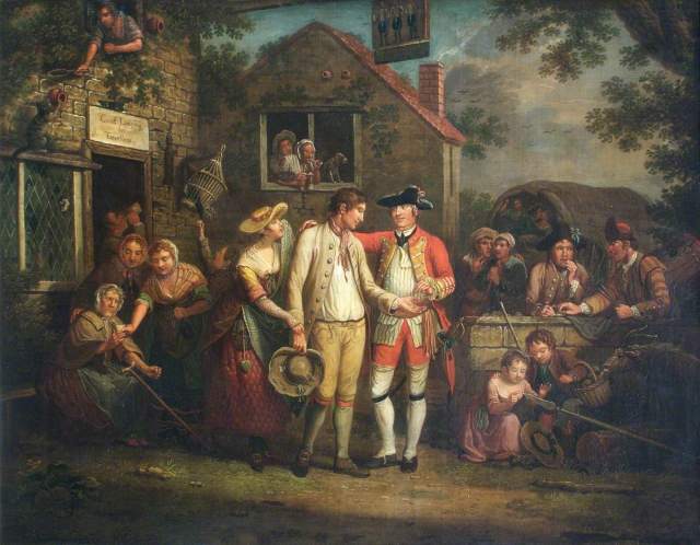 The people between rich and poor are harder to define in art during this period. One reason for this is that the concept of the middle class/middling sort is itself at this time pretty much defined as just being between the rich and the poor! This could range from the British landed gentry to prosperous Massachusetts farmers, from an artist catering to the upper classes to a shopkeeper’s family. Kirsten Olsen defines the range of incomes of the class in Daily Life in Eighteenth Century England as £300-400 to £40-50, while noting that even businessmen who exceeded that would be considered “middle” by many of their contemporaries due to their connections with trade. According to her figures, the label can theoretically include anything from 16% to 42% of all British families. James and Dorothy Volo describe the American middle classes as consisting of mostly farmers, plus “tradesmen, artisans, and craftsmen”, in Family Life in 17th and 18th Century America. (“Quite the opposite to the thinking of some today, farming in colonial America was a generally profitable enterprise insuring a roof over a man’s head, sufficient food for his family, and a modicum of personal independence.”)