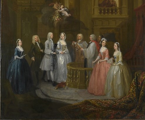 | The Wedding of Stephen Beckingham and Mary Cox, William Hogarth, 1729; MMA 36.111 |