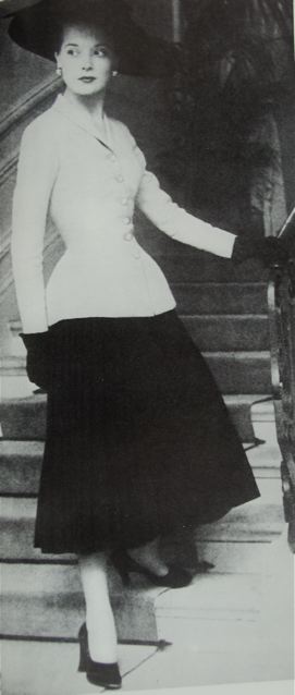 Christian Dior’s first fashion show under his own name was in February of 1947, not very long after the Théâtre. This is the show where he premiered his Corolle and En Huit lines (the former with full skirts and the latter with pencil skirts), which contained the famous black and white Bar Suit and is said to have prompted Carmel Snow to declare that he had created a “new look”.