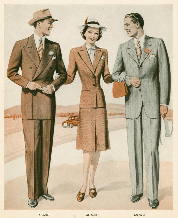 | “Pinstripe and herringbone suits”, 1942; NYPL |