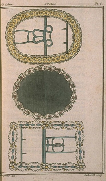 These buckles were drawn from the Shop of M. GRANCHER, at the Little Dunkirk, which has a full assortment of them, of all types and in the latest taste. The full selection there renews itself each day at his Shop.