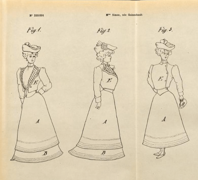 So let’s start with the name. The term “robe à transformation” is used frequently for these, and that is a historical one. However, the earliest use I’ve found of it is from 1903, and that use is not quite what we use it for today. It’s from a patent application by Mme Simon, the professional name of Marie Guinnebault (translation below mine):